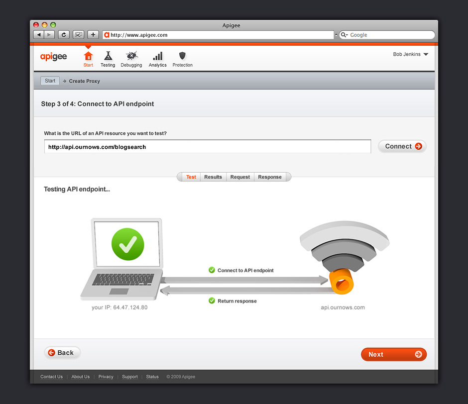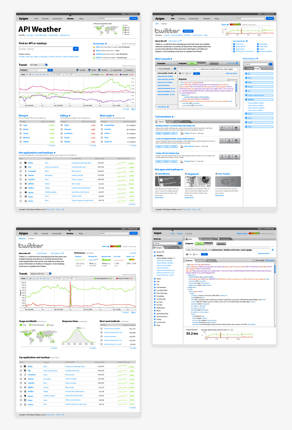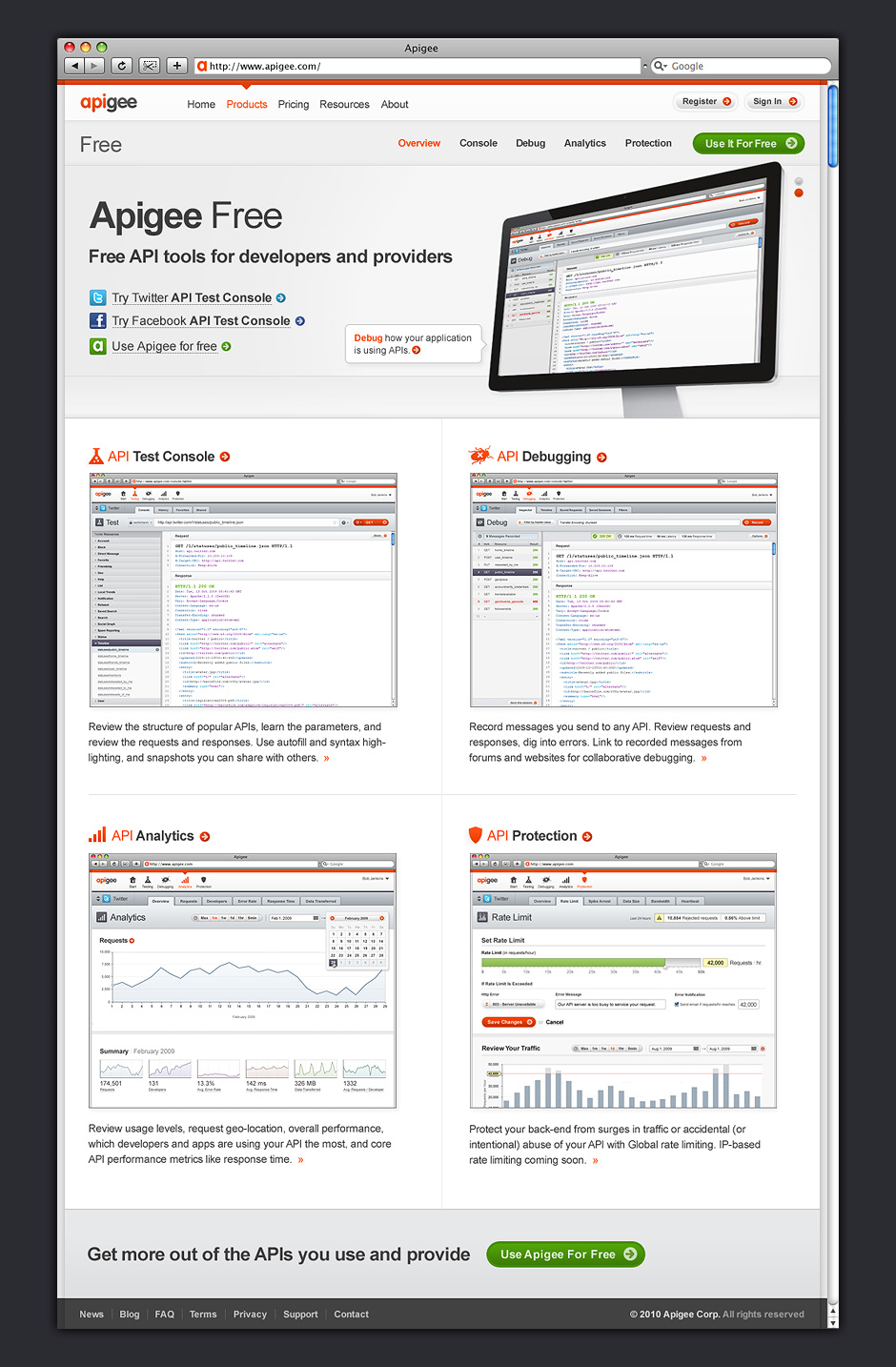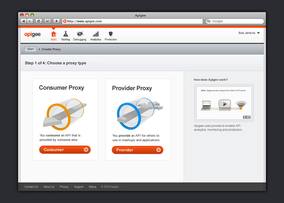 a separate brand named Apigee. Under Apigee, we worked to develop a set of tools to encourage software developers to build with APIs. Over the course of four years, I designed Apigee’s identity, marketing site, and tools that help developers learn and debug APIs.