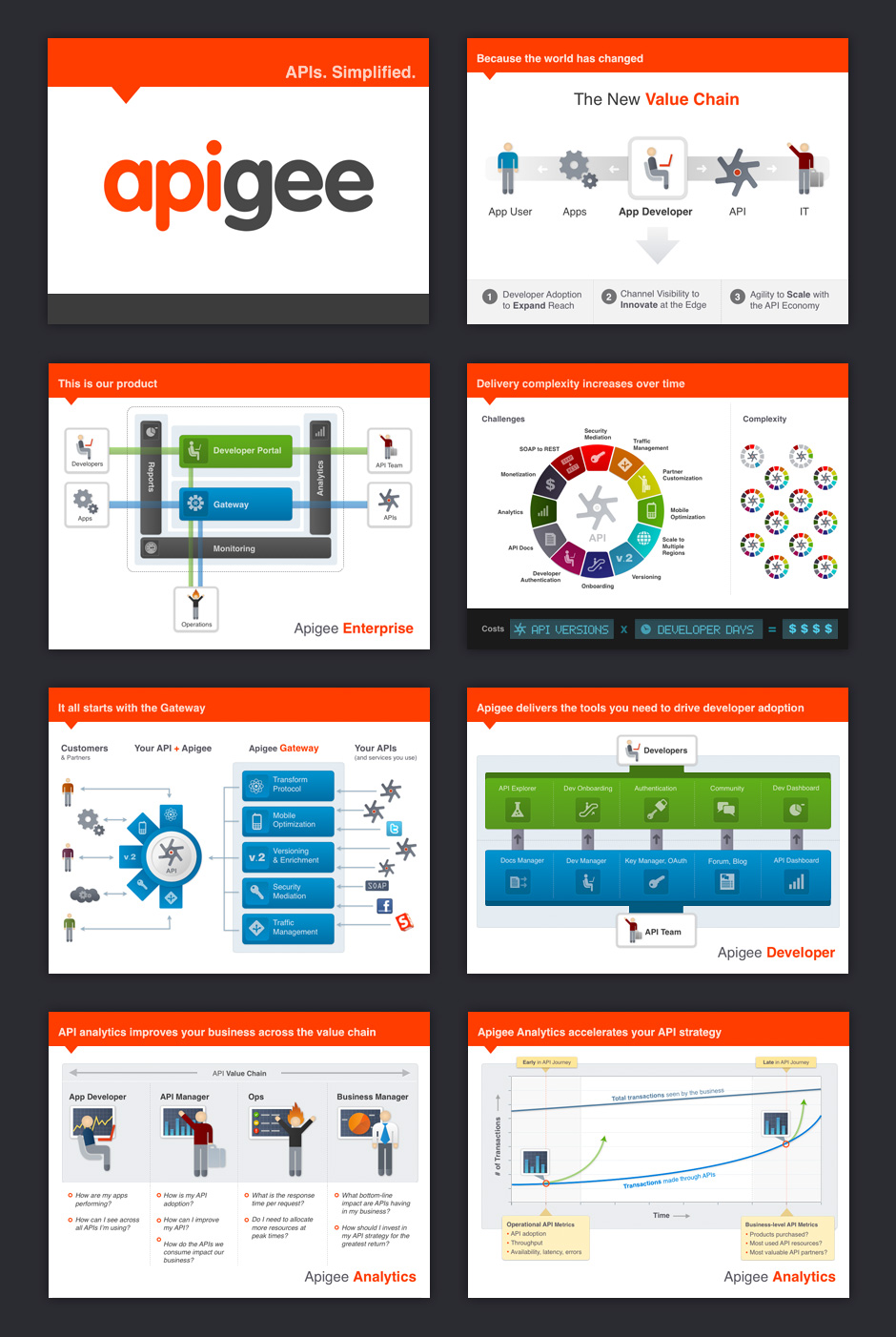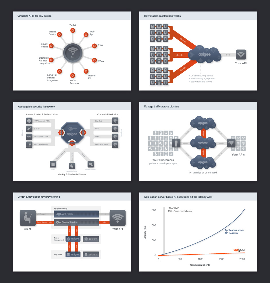 - This system of diagrams was intended to help customers understand how Apigee's technology works.