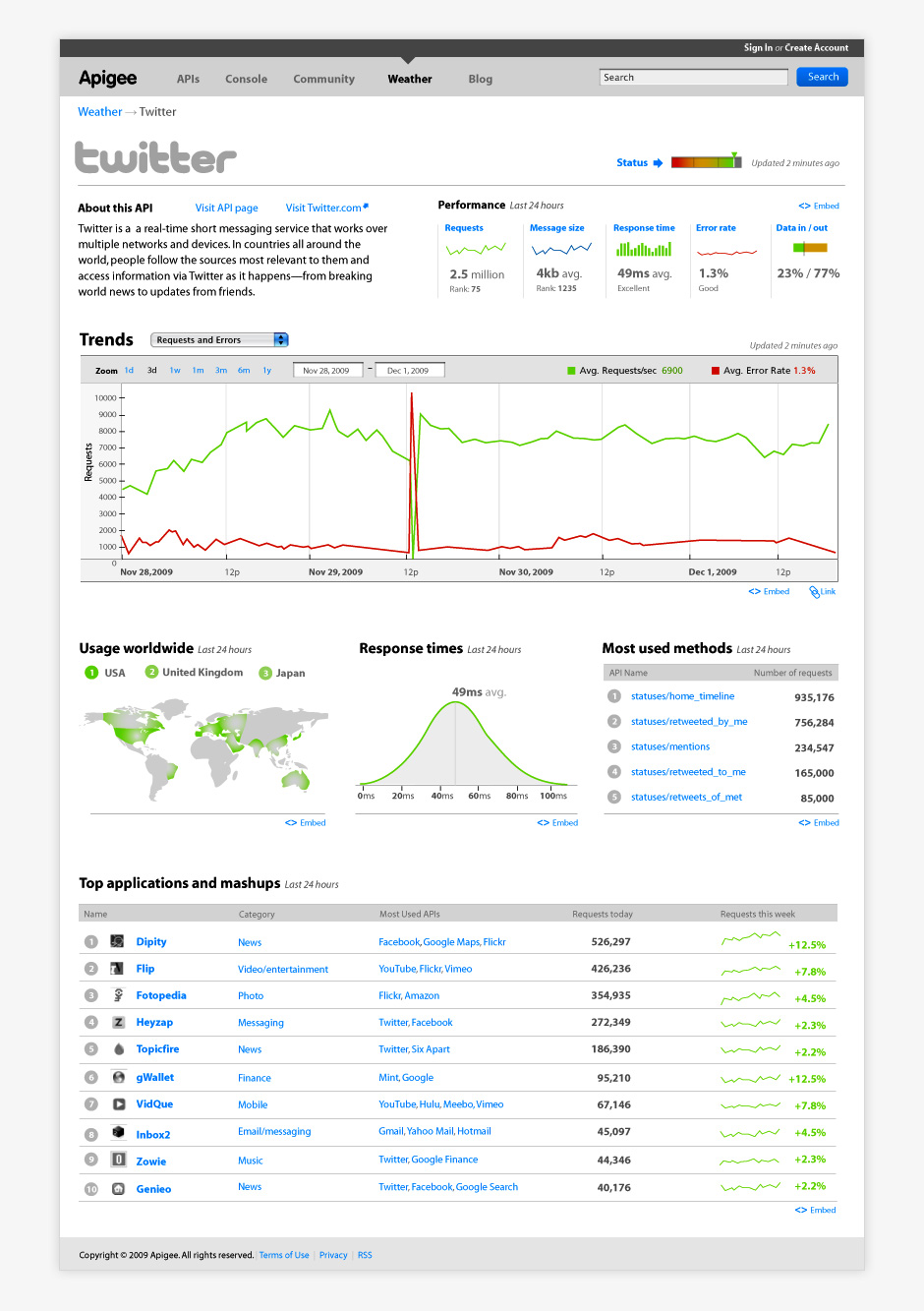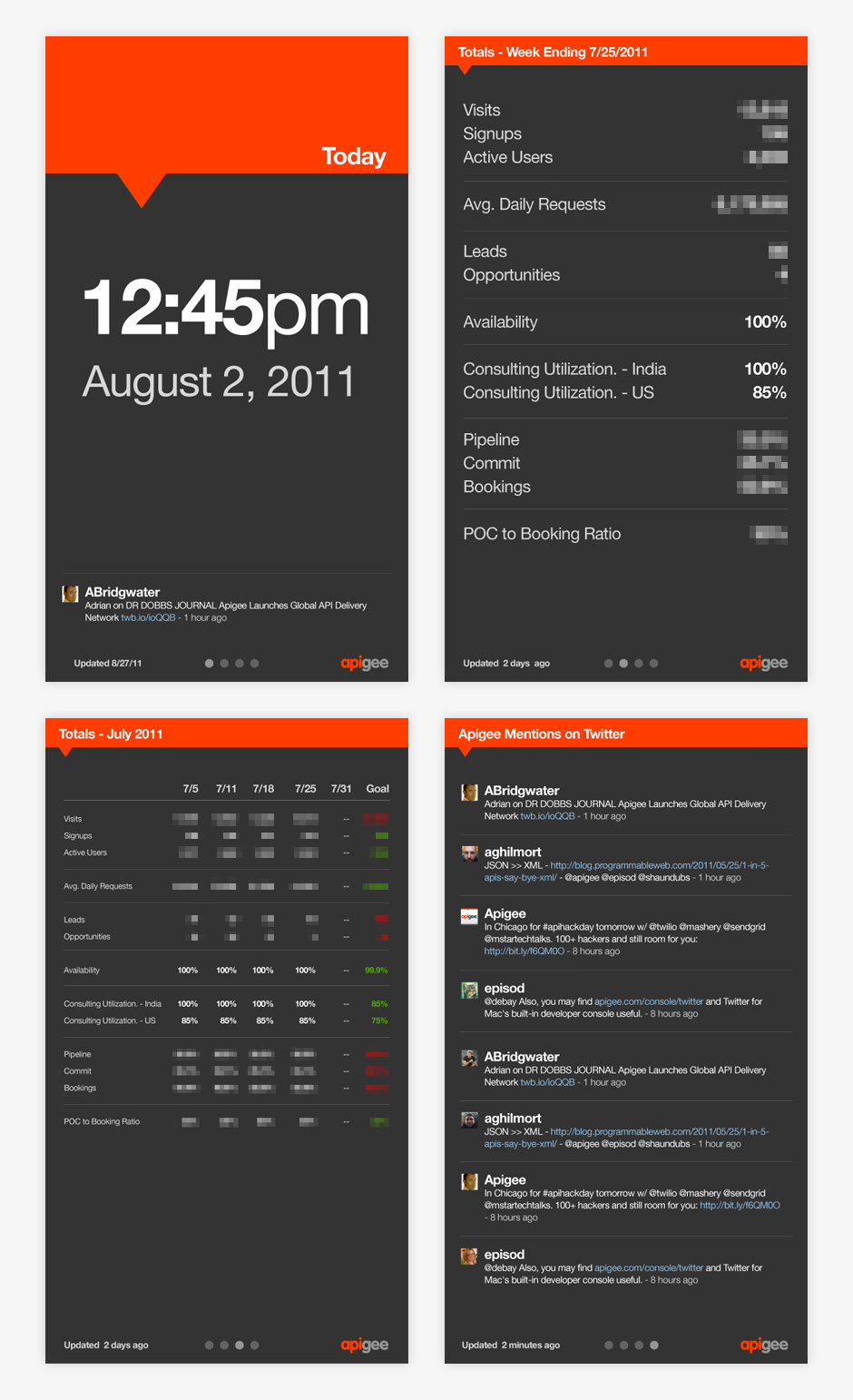 - This company dashboard was a hackday design project. The dashboard is displayed at Apigee HQ.