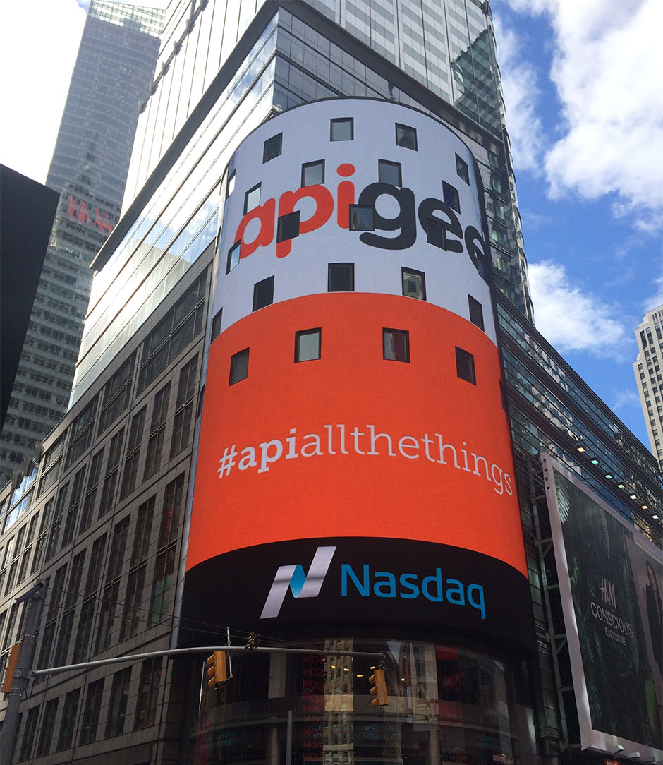 - In 2015, Apigee went public. I was surprised and proud to see my work in Times Square.