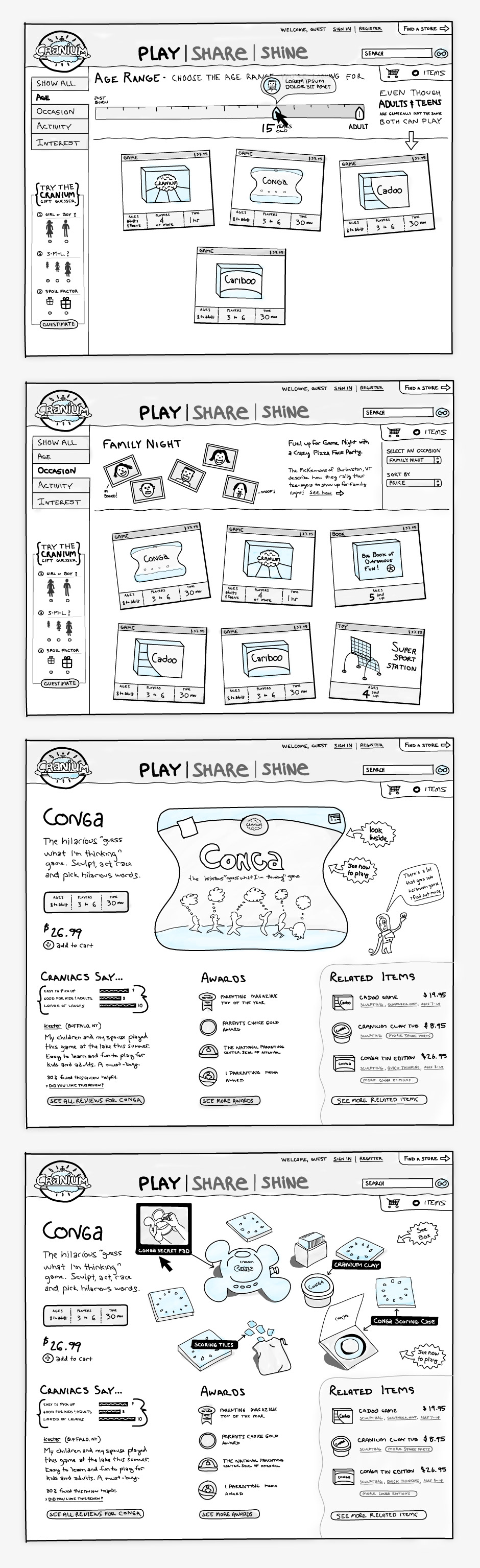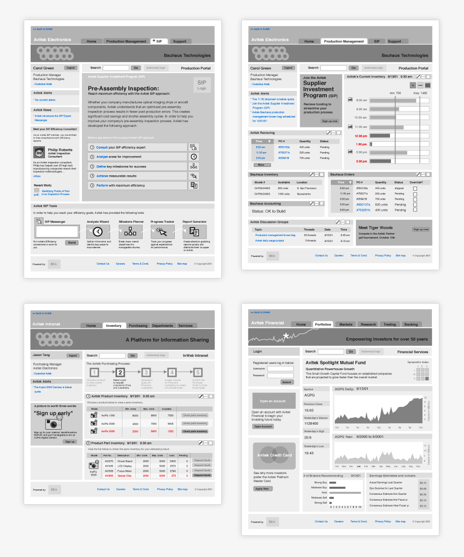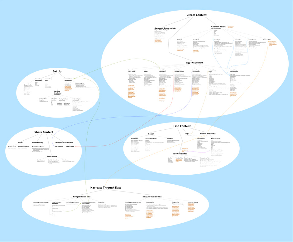 The following screens show some of the things I've produced when employed to gather requirements, organize information, and propose ways for interfaces to accomplish a project's goals.