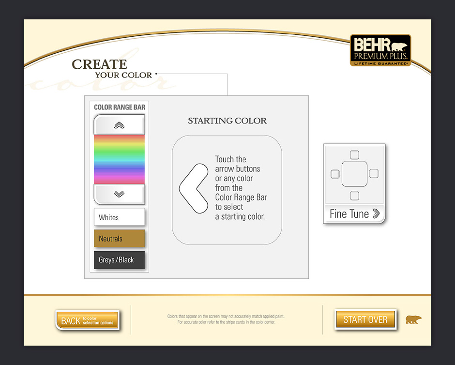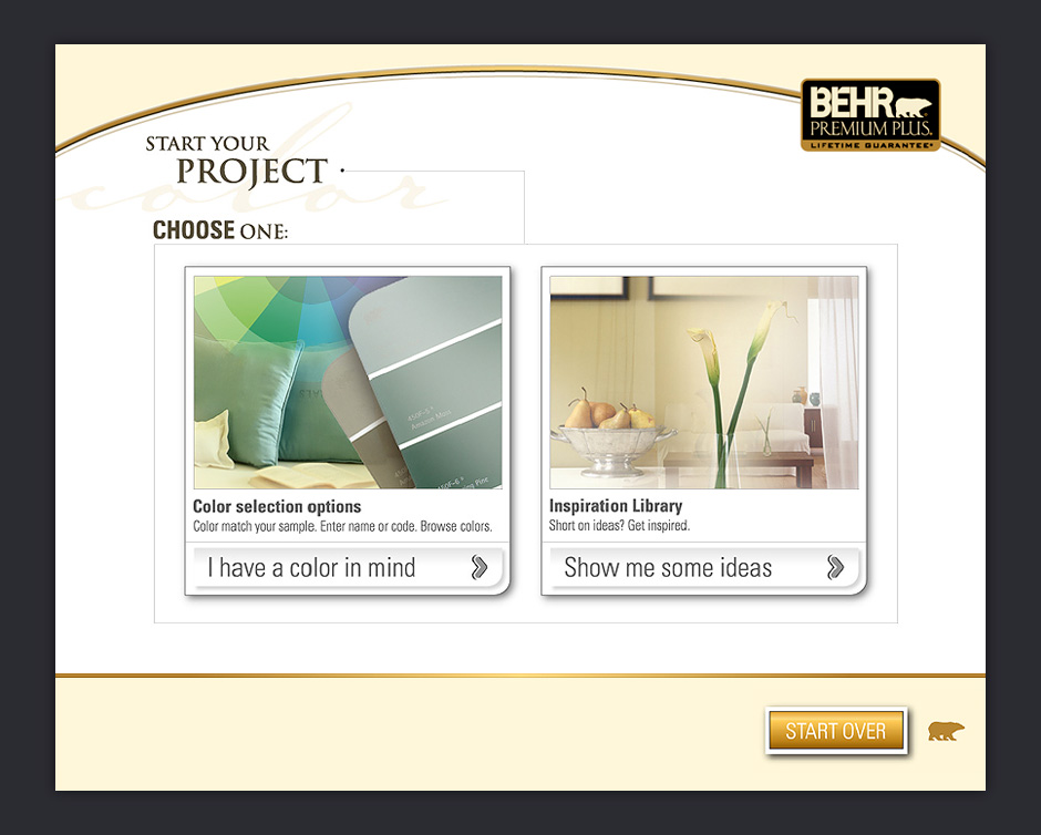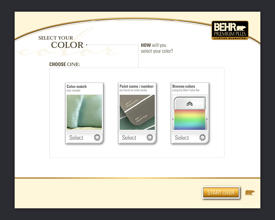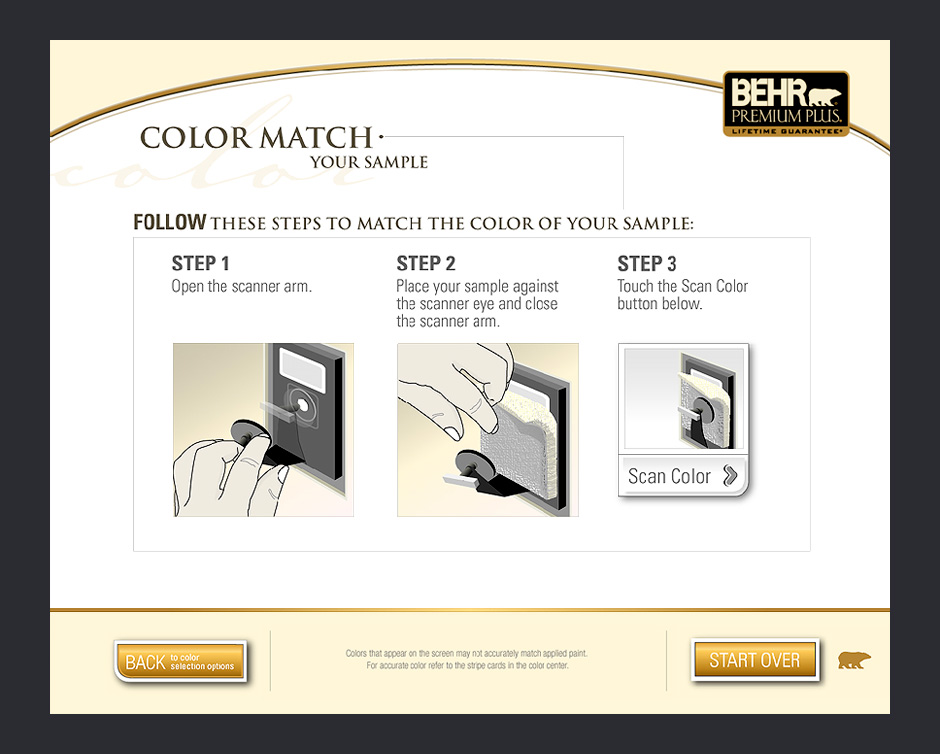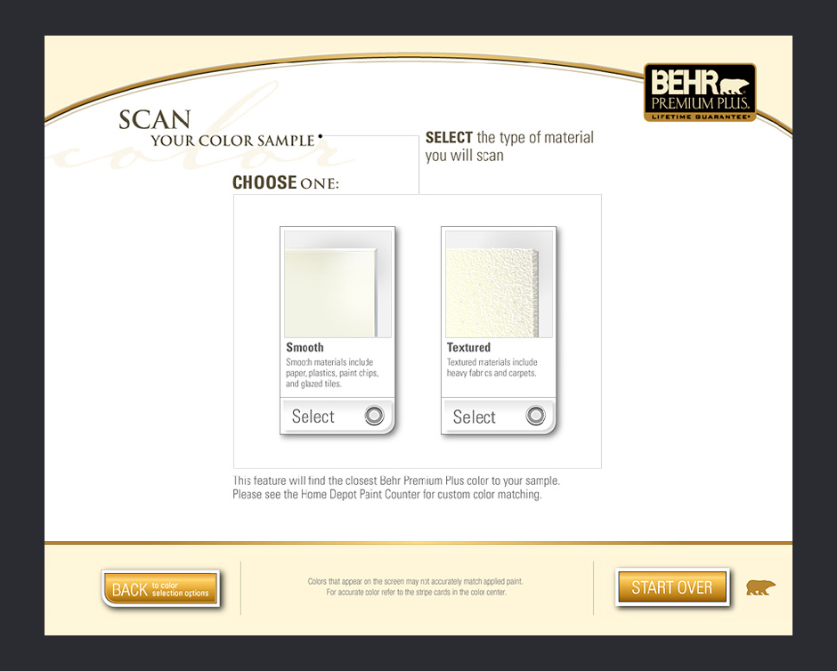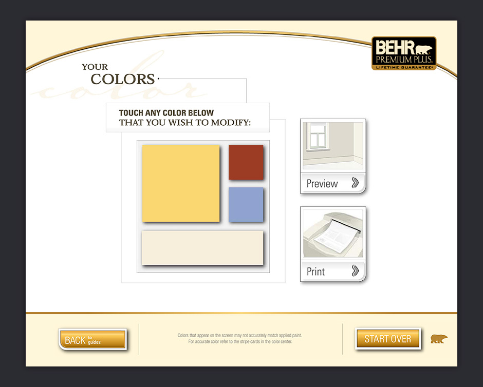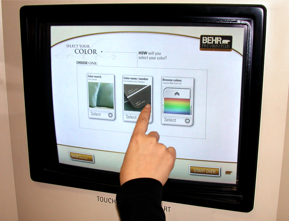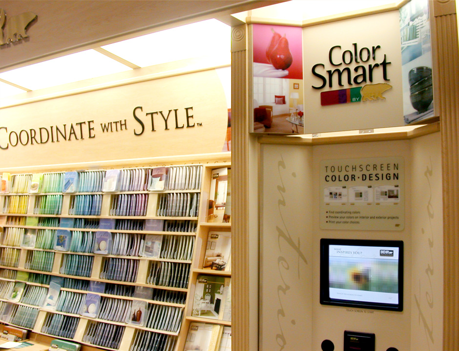 In 2001, BEHR decided to increase its presence in Home Depot by adding a touch-based interactive kiosk. The ColorSmart kiosk was designed to help people choose colors, match paints, visualize color choices, and calculate paint quantities.