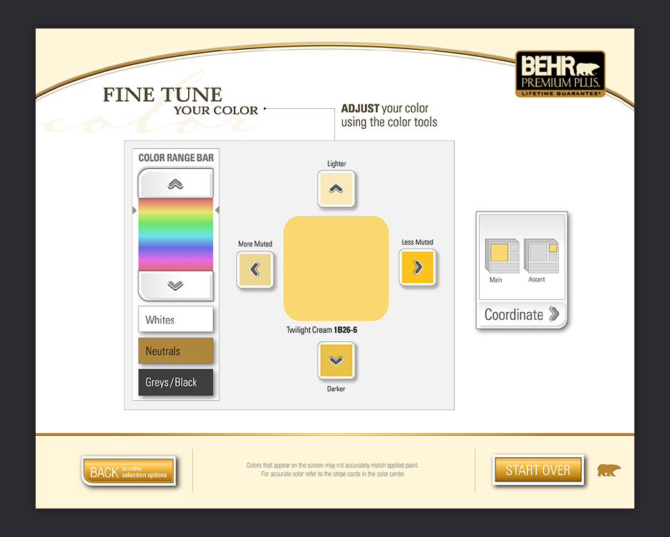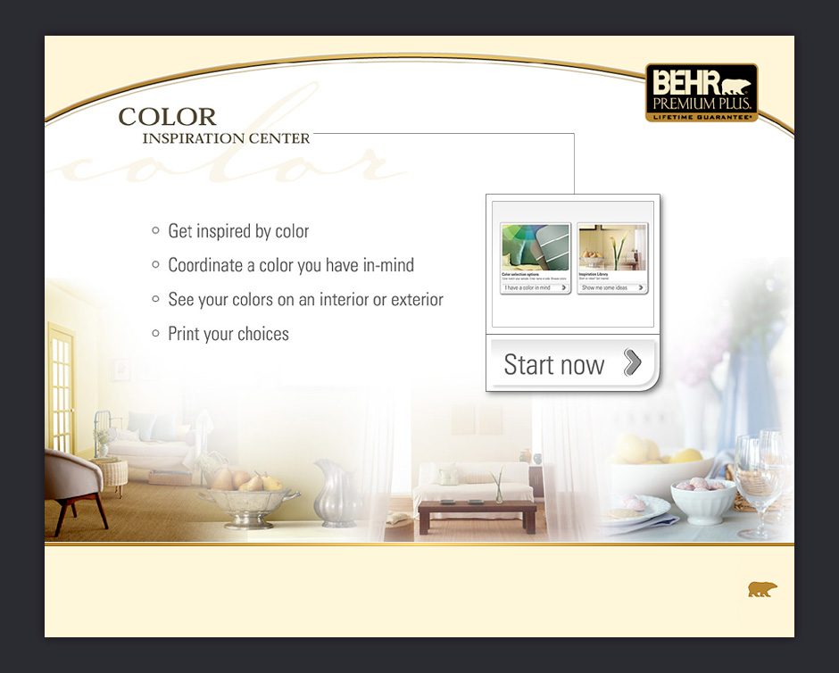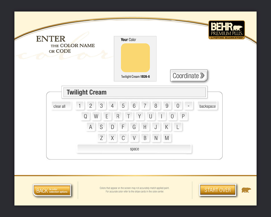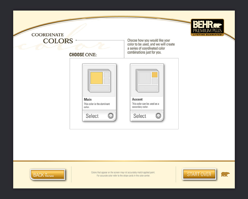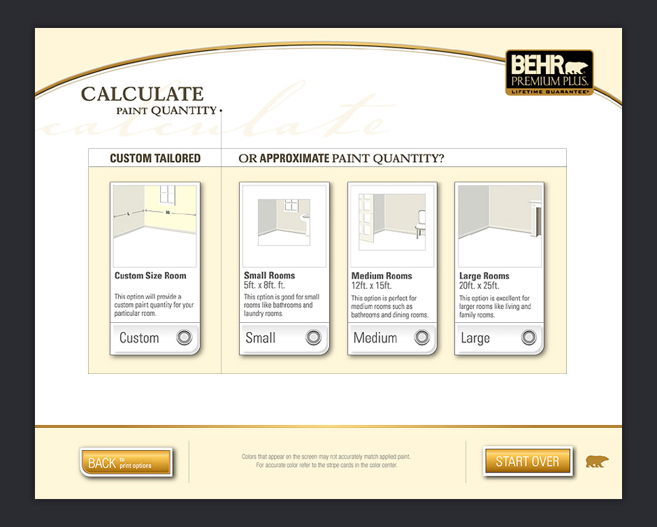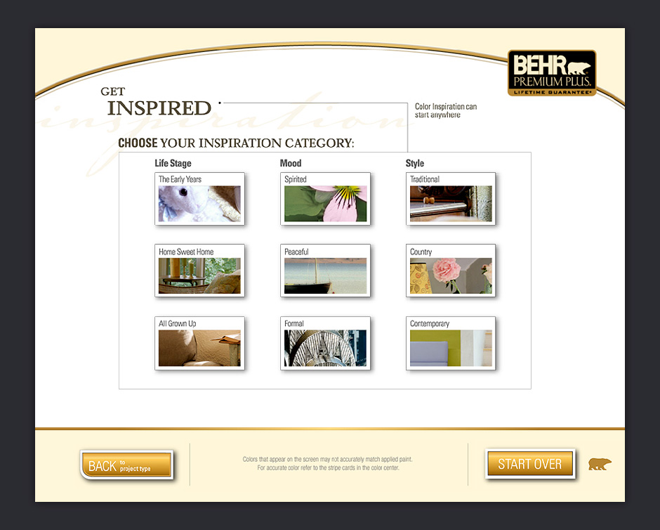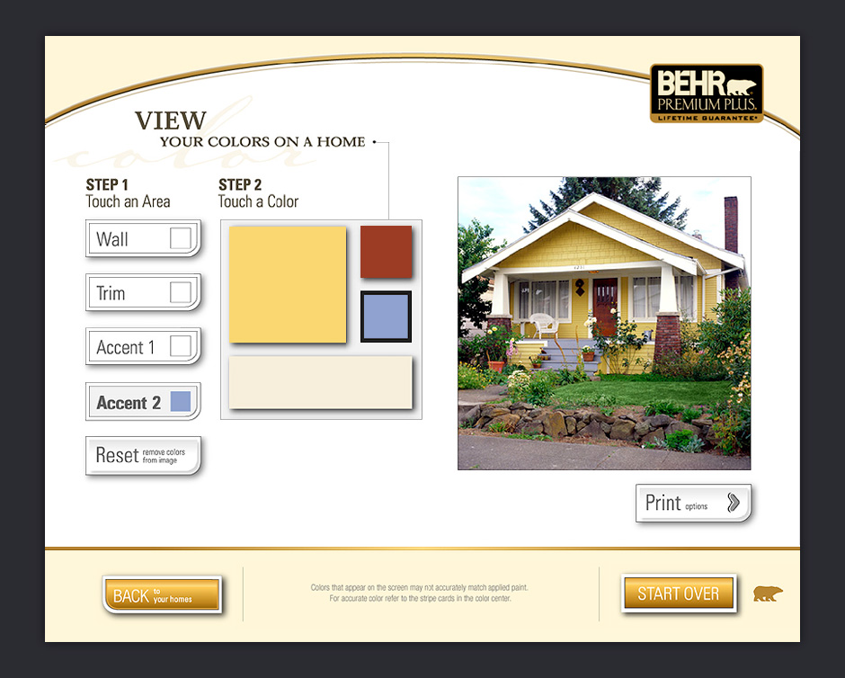 In 2001, BEHR decided to increase its presence in Home Depot by adding a touch-based interactive kiosk. The ColorSmart kiosk was designed to help people choose colors, match paints, visualize color choices, and calculate paint quantities.