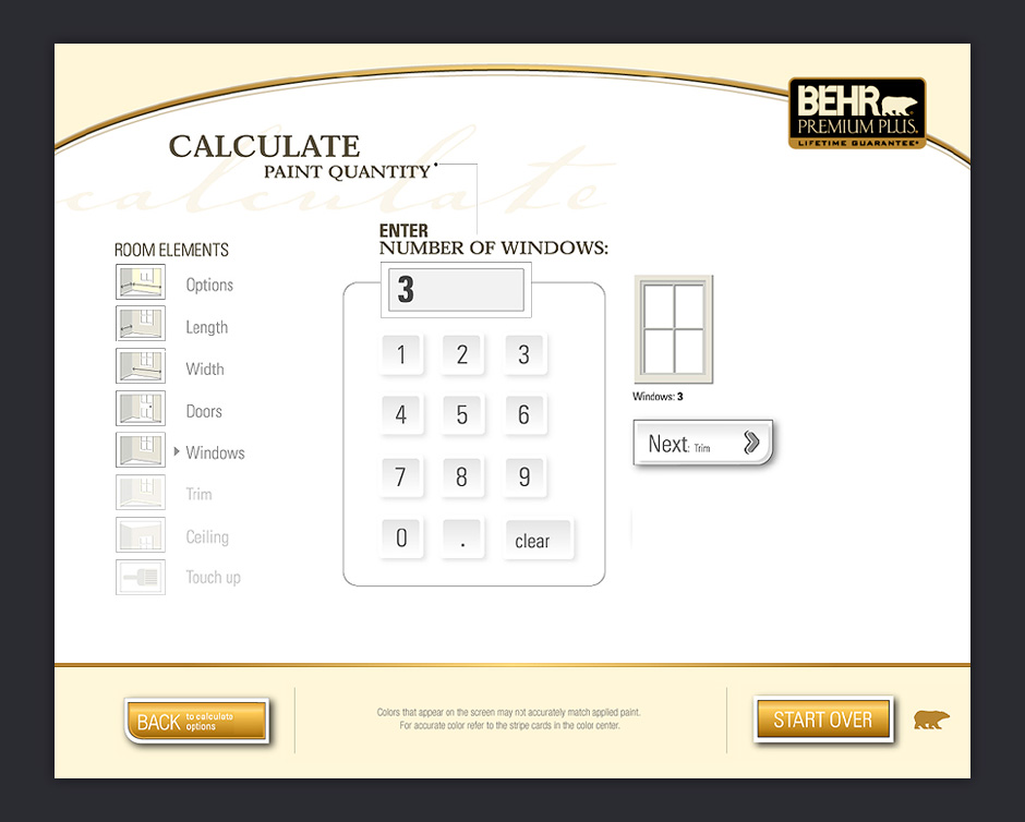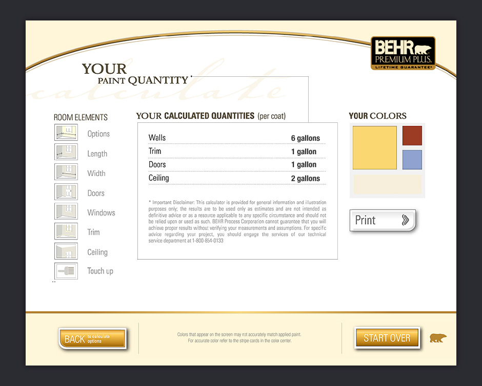 - Once a you've selected paint colors, you have the option of using a calculation wizard.