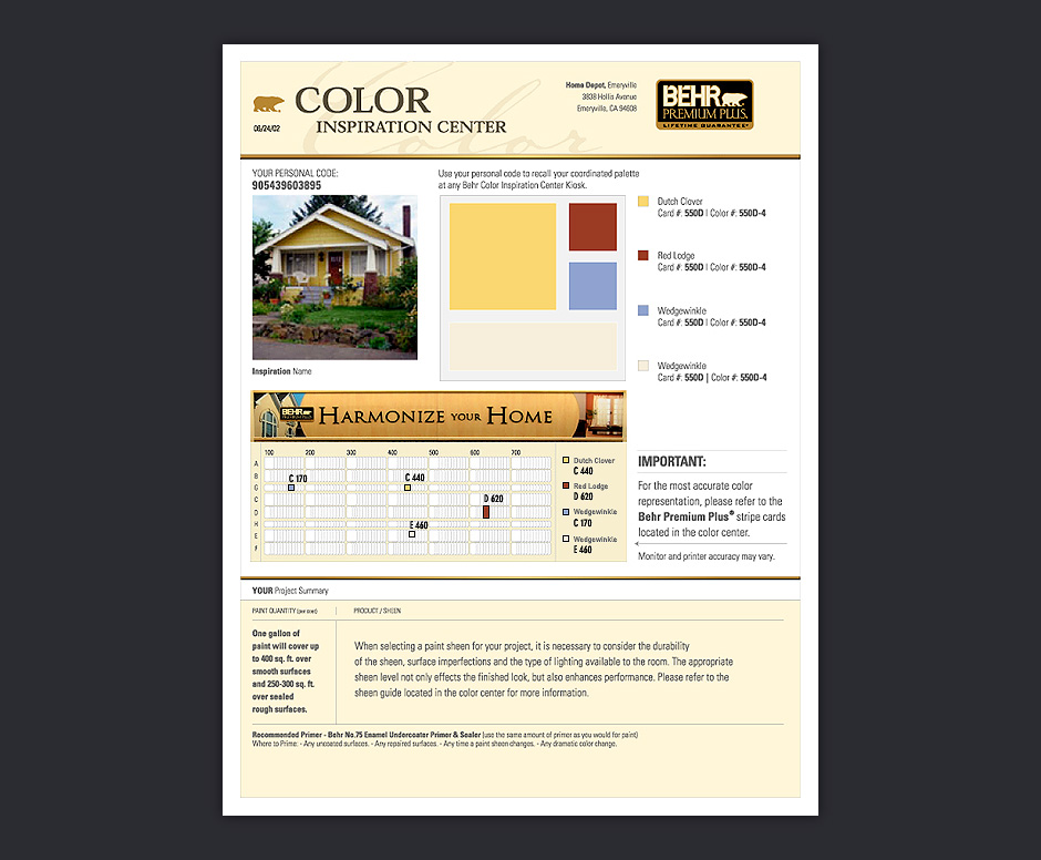 - When you're done, you get a customized printout that helps you locate paint samples in the adjacent Color Center.