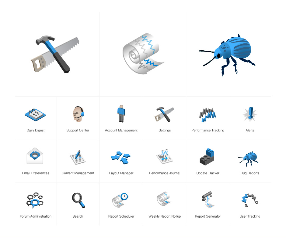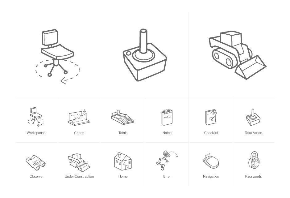 - These hand-drawn icons were used for an exploratory beta product.