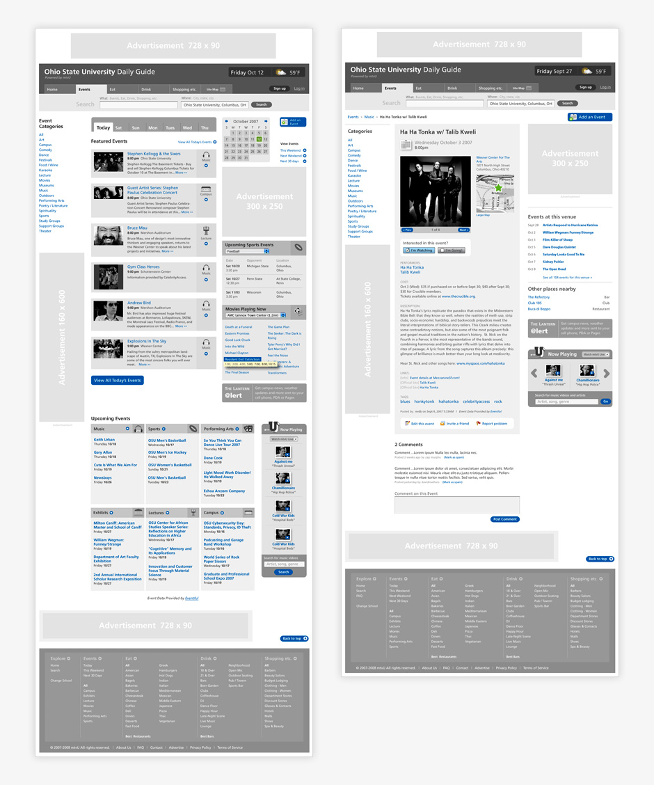 - mtvU Event Wireframes