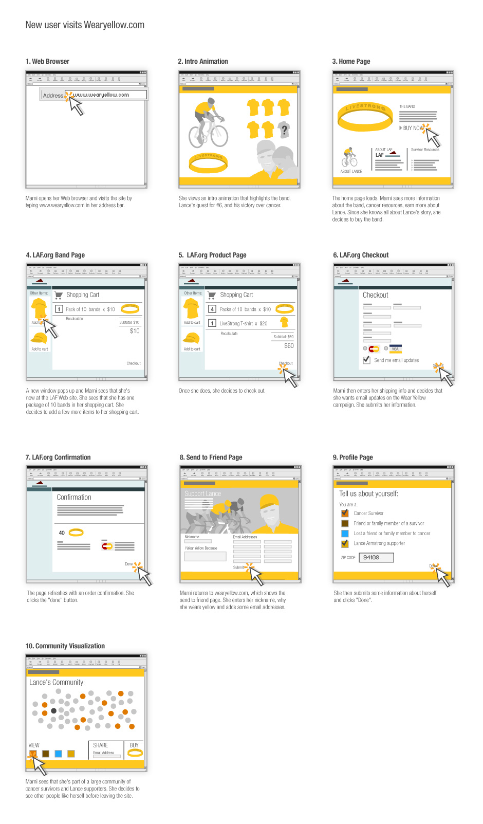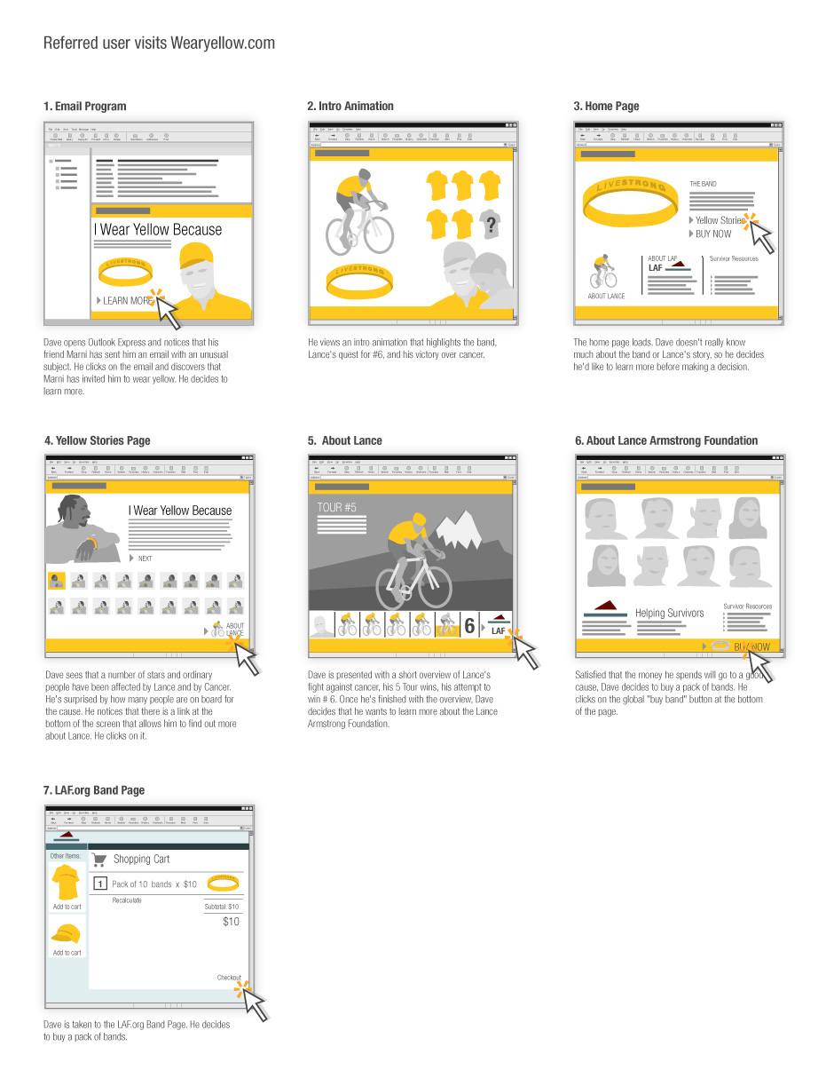 - This is an early storyboard for what eventually became the LiveStrong band site.