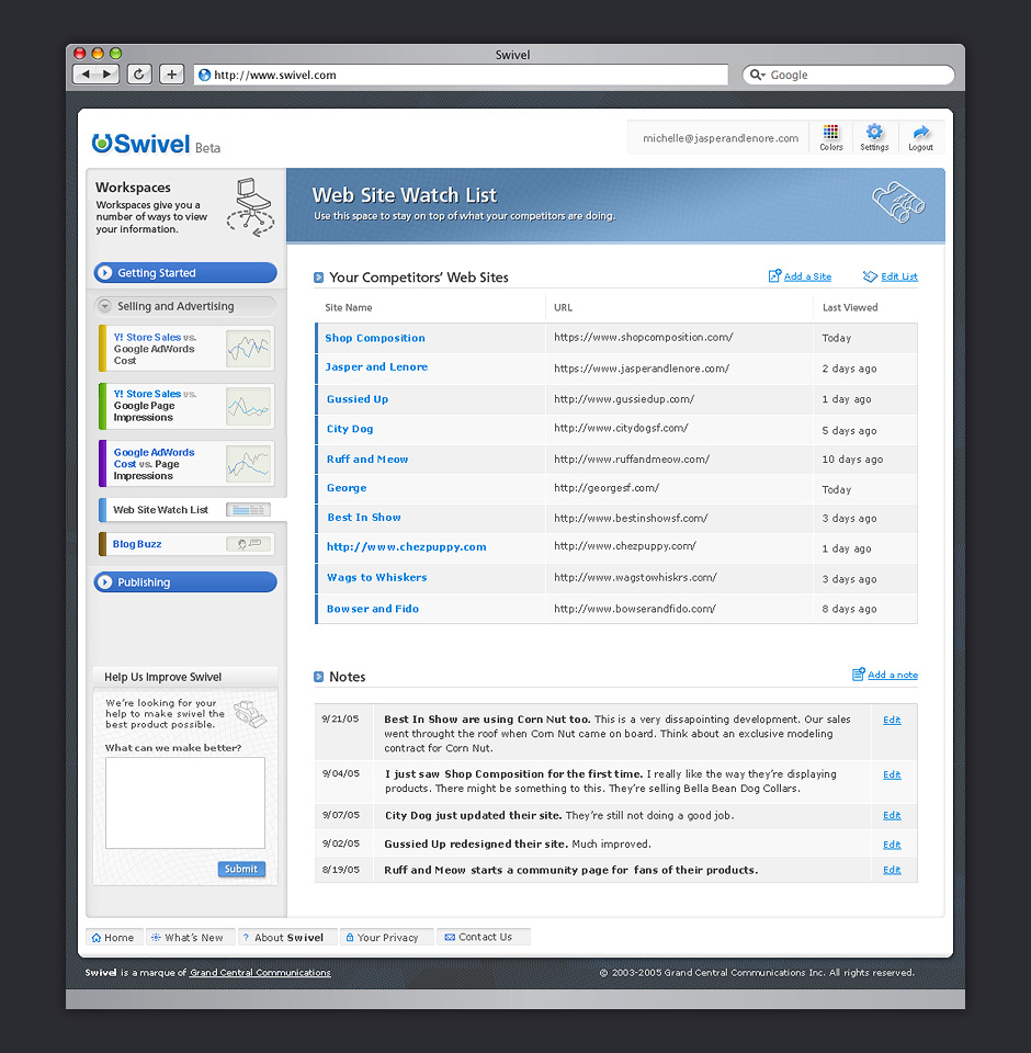 - Swivel also gave people the ability to stay on top of what their competitors were doing.
