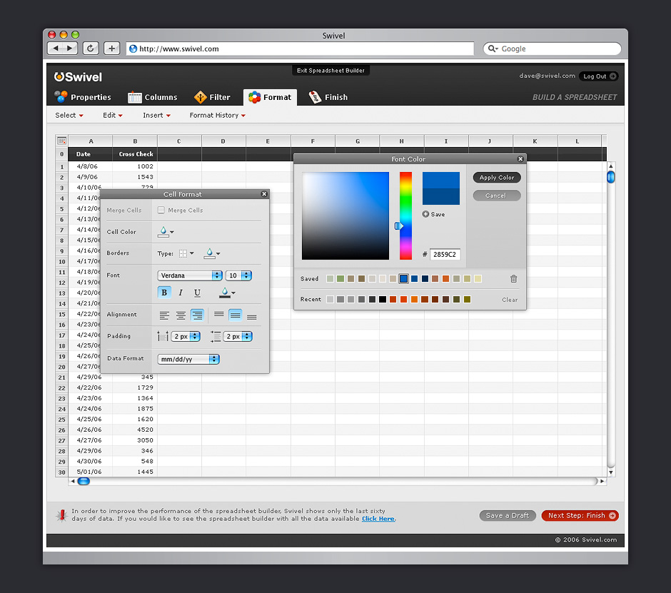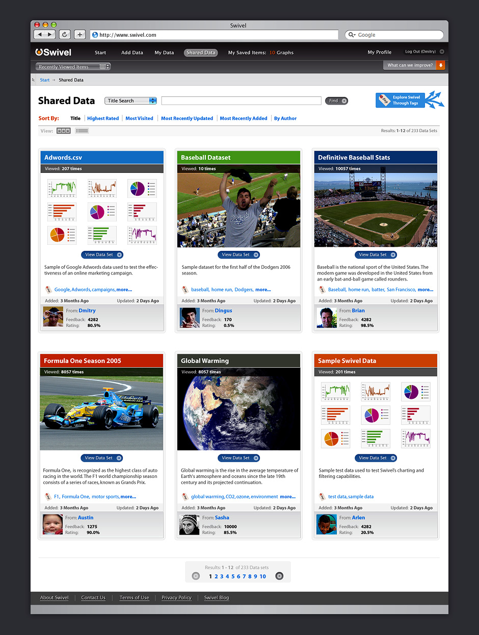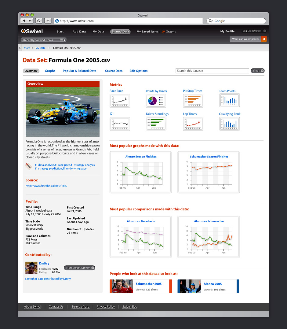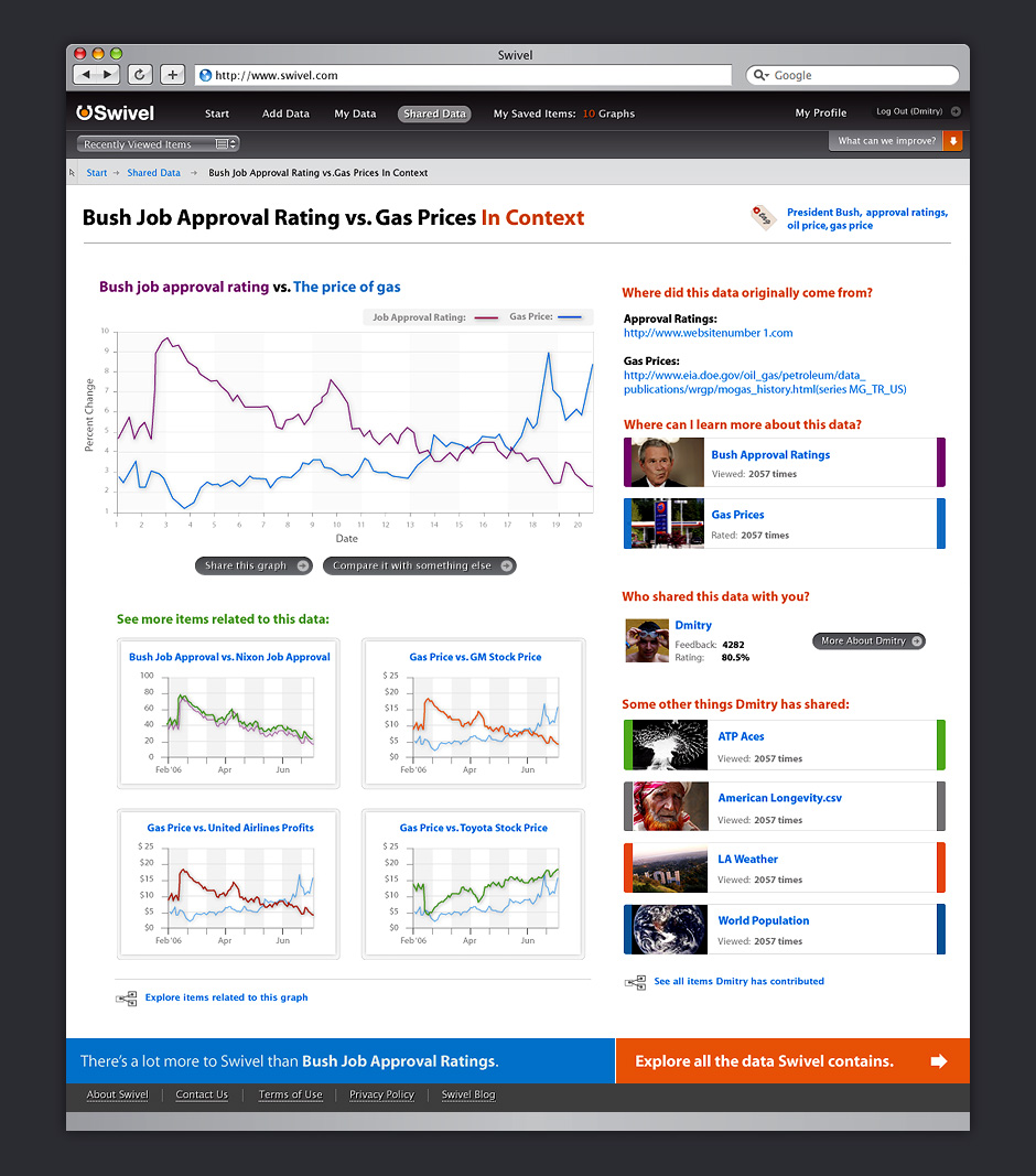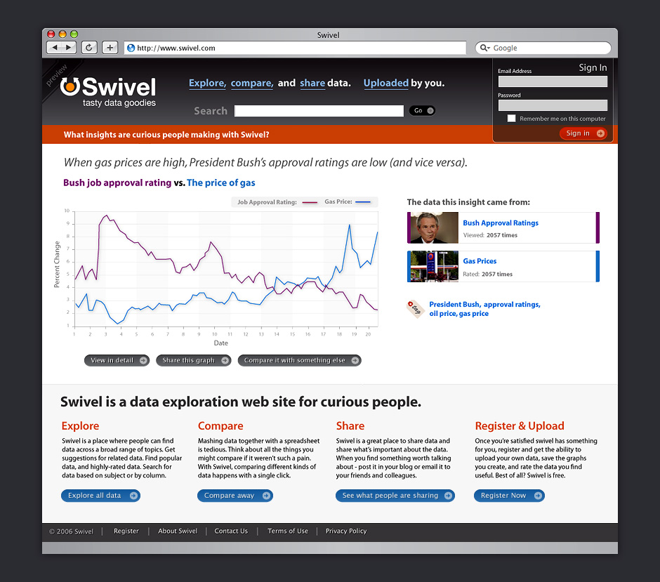 - Swivel morphed into a site for social data exploration. This design was simplified for quicker iteration.