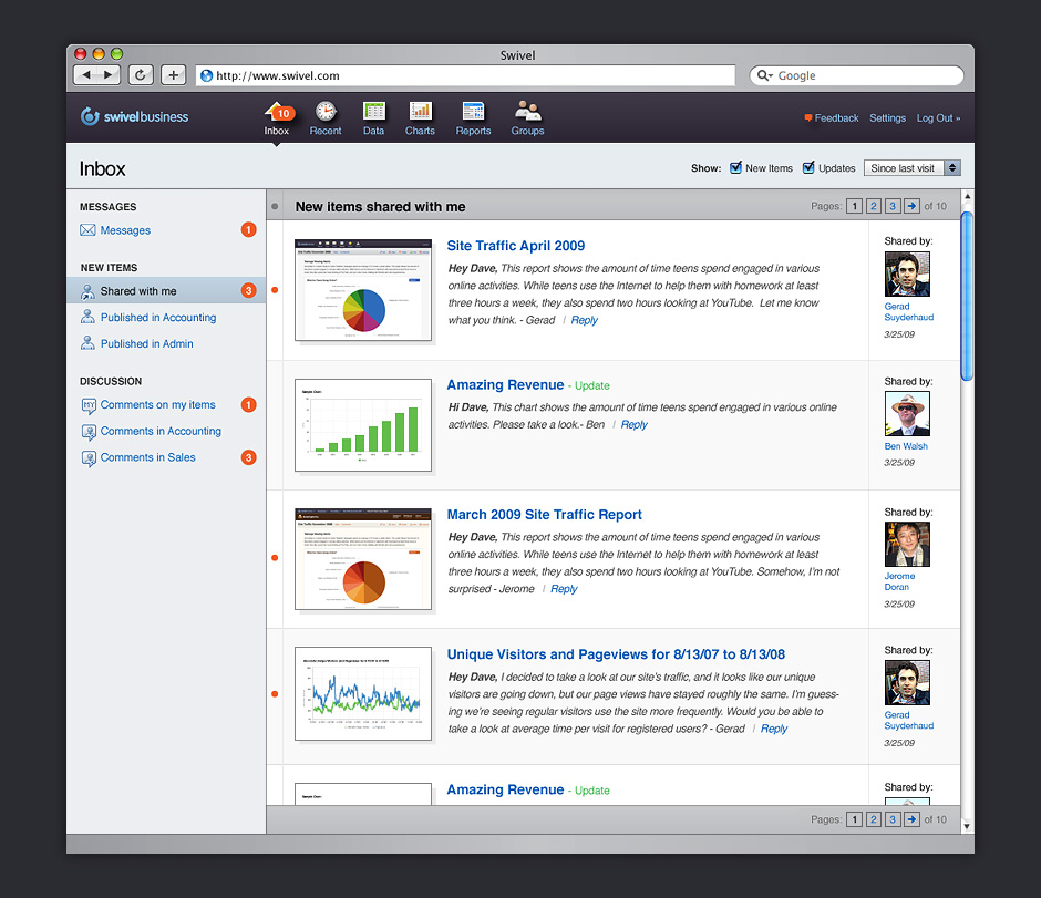 - Swivel started out as an application for people who were operating businesses enabled by online services.