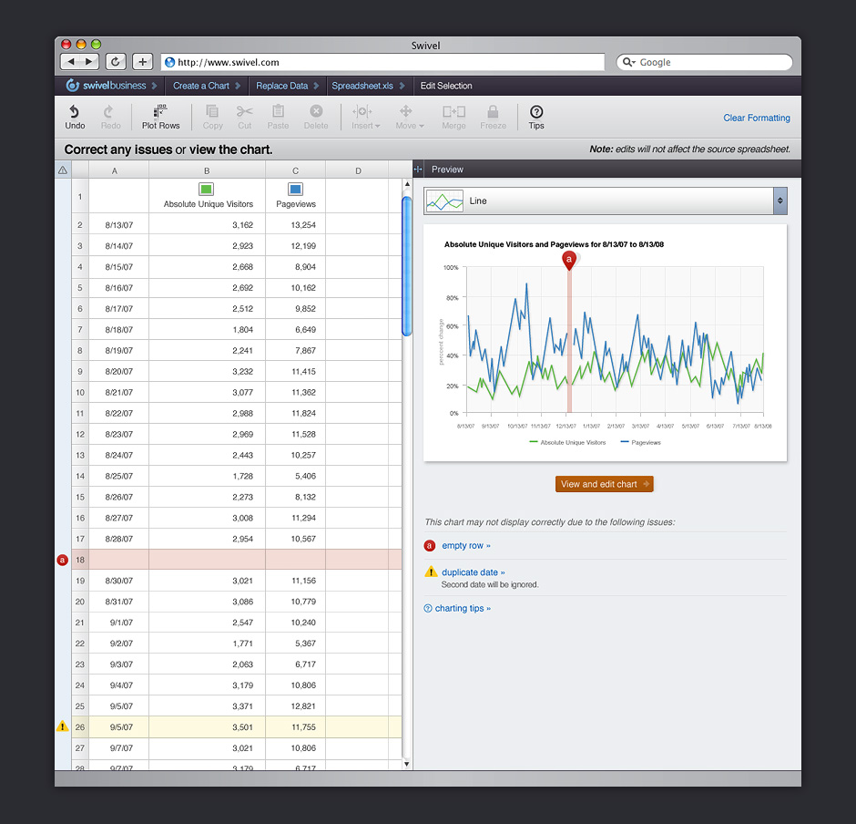 - Getting data into a usable format could be a challenge. Swivel needed to help users correct gaps in data.