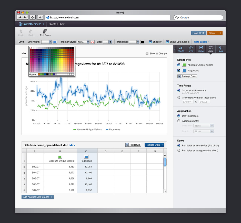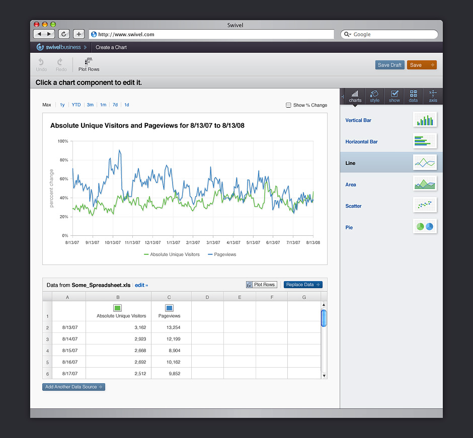 - Swivel provided non-destructive ways to adjust how data was displayed in charts.
