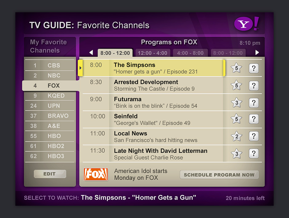 During the course of the project, we learned that designing for touch kiosks involves many of the same challenges as working in interactive television or mobile devices. Kiosks offer low information density and the number of choices seen on the screen at any one time must be minimized to reduce the potential for error.